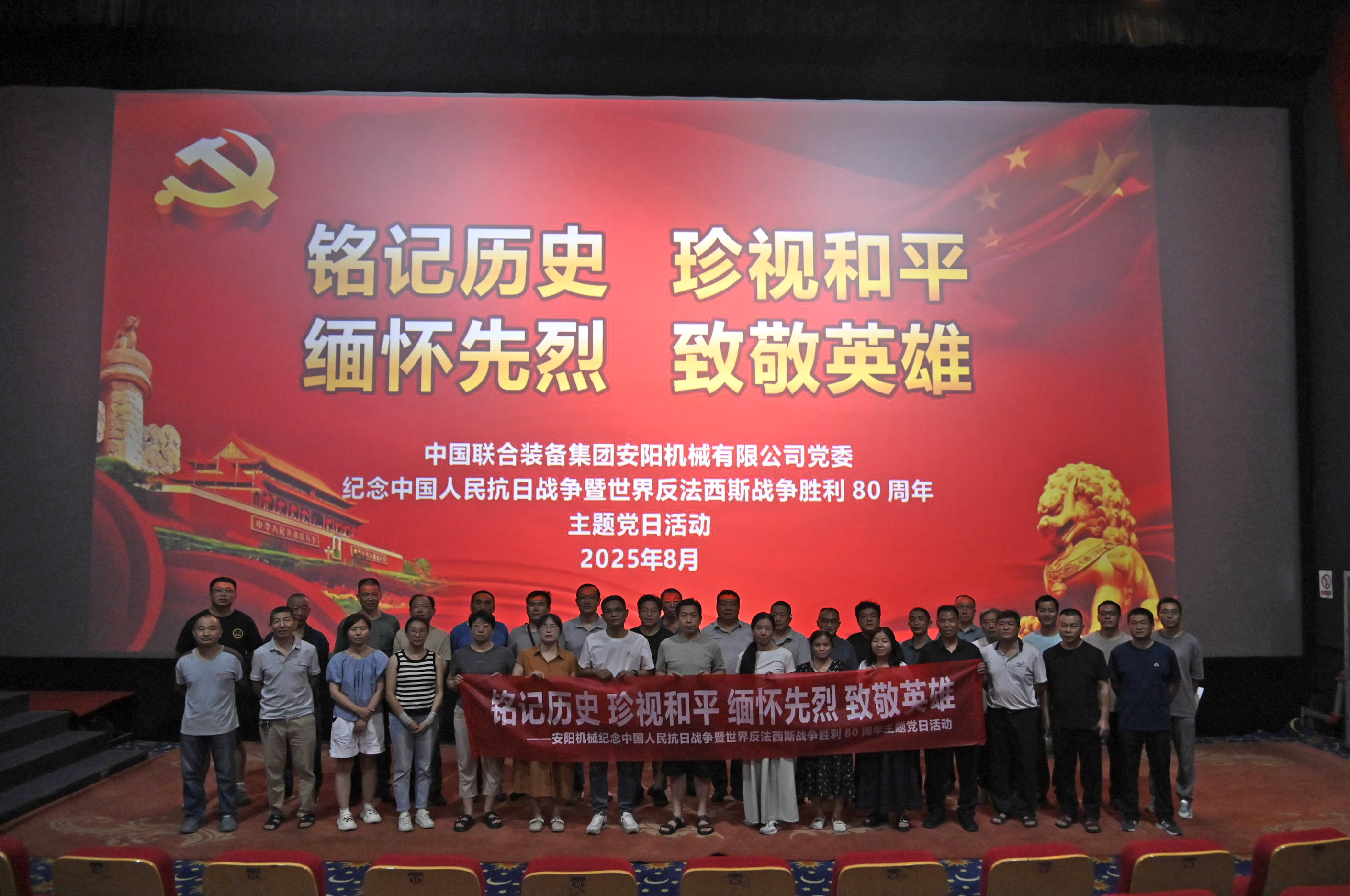 為深入貫徹習(xí)近平總書(shū)記關(guān)于弘揚(yáng)偉大抗戰(zhàn)精神的重要指示精神,紀(jì)念中國(guó)人民抗日戰(zhàn)爭(zhēng)暨世界反法西斯戰(zhàn)爭(zhēng)勝利80 周年,大力弘揚(yáng)愛(ài)國(guó)主義精神與偉大抗戰(zhàn)精神,引導(dǎo)廣大黨員干部賡續(xù)紅色血脈、勇?lián)鷷r(shí)代使命,8 月 23 日下午,中國(guó)聯(lián)合裝備集團(tuán)安陽(yáng)機(jī)械有限公司黨委以 “銘記歷史 珍視和平 緬懷先烈 致敬英雄” 為主題,組織全體黨員及入黨積極分子,開(kāi)展主題黨日活動(dòng),通過(guò)觀(guān)看愛(ài)國(guó)主義電影《南京照相館》,重溫歷史記憶、凝聚奮進(jìn)力量。